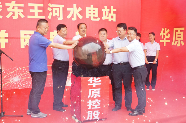 7月28日上午11點(diǎn),華原控股有限公司在黃陵?yáng)|王河水電站舉行正式并網(wǎng)發(fā)電慶典儀式。慶典現(xiàn)場(chǎng),黃陵縣縣委常委、政法委白建平書(shū)記,黃陵縣水務(wù)局張峰局長(zhǎng),黃陵縣田莊鎮(zhèn)梁博黨委書(shū)記,黃陵縣田莊鎮(zhèn)趙文杰鎮(zhèn)長(zhǎng),華原控股有限公司董事長(zhǎng),華原控股有限公司魏廣林總經(jīng)理共同啟動(dòng)水晶球,共同見(jiàn)證東王河水電站并網(wǎng)發(fā)電。