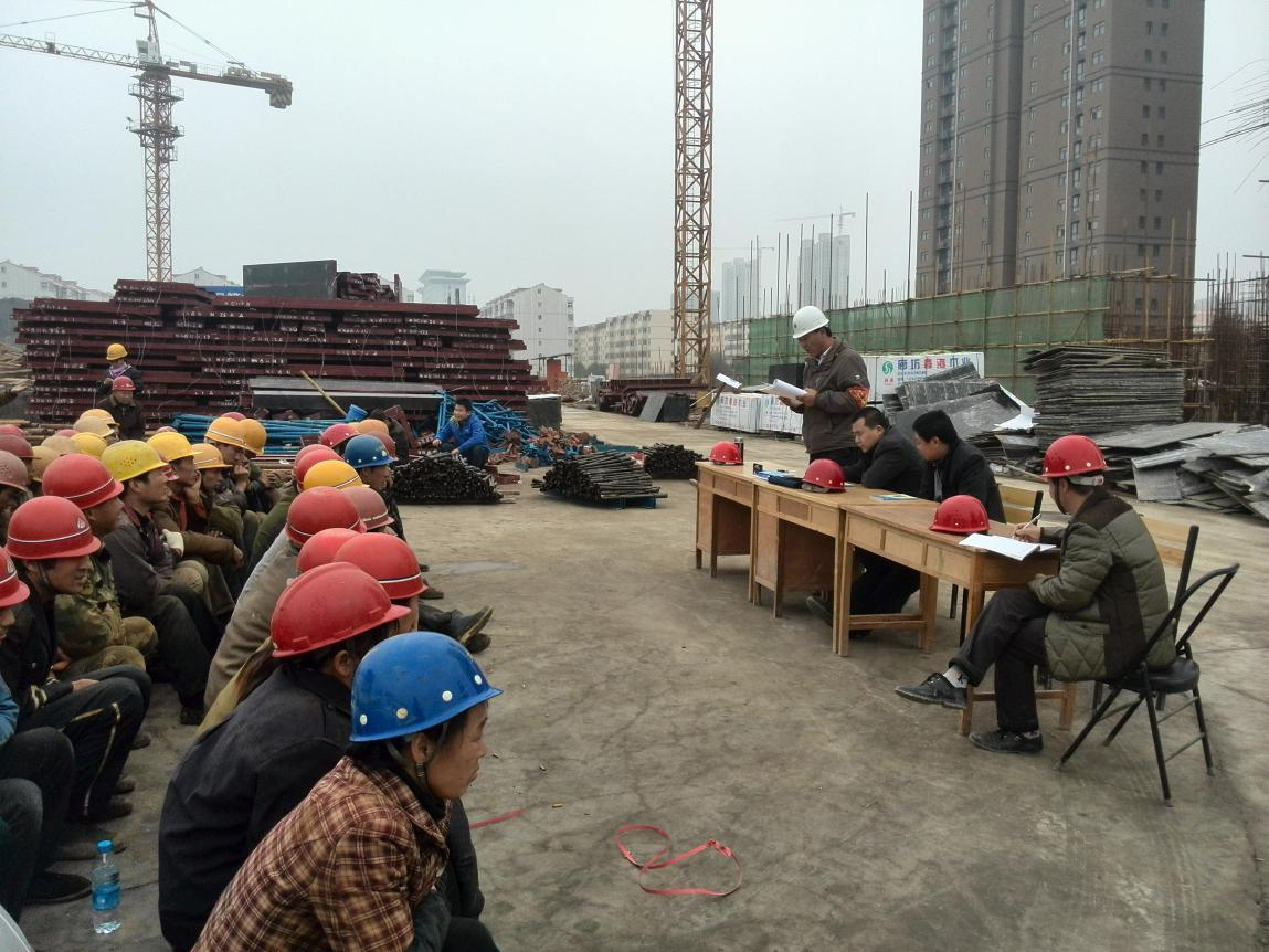 在此次三級(jí)安全教育大會(huì)上及各個(gè)班組的全部施工人員面前,工程部周戰(zhàn)勝部長(zhǎng)宣布了會(huì)議流程,項(xiàng)目總工韋建業(yè)、項(xiàng)目安全員韓恒福、勞務(wù)公司代表羅傳久相繼做了發(fā)言,對(duì)工人講解了施工過程中的安全操作規(guī)程及需關(guān)鍵注意點(diǎn),從自身經(jīng)驗(yàn)出發(fā),講述了自身經(jīng)歷的安全事故,以實(shí)例來提醒工人要時(shí)刻緊抓安全不放松,切不可有一絲馬虎。同時(shí)項(xiàng)目經(jīng)理馮中樓也做了重要發(fā)言,他提到:工地安全無(wú)小事,任何一個(gè)看似簡(jiǎn)單的小問題都有可能引發(fā)大的事故,項(xiàng)目各管理人員要防微杜漸,發(fā)現(xiàn)任何問題及時(shí)處理,并從項(xiàng)目管理角度,將安全管理責(zé)任落實(shí)到個(gè)人。